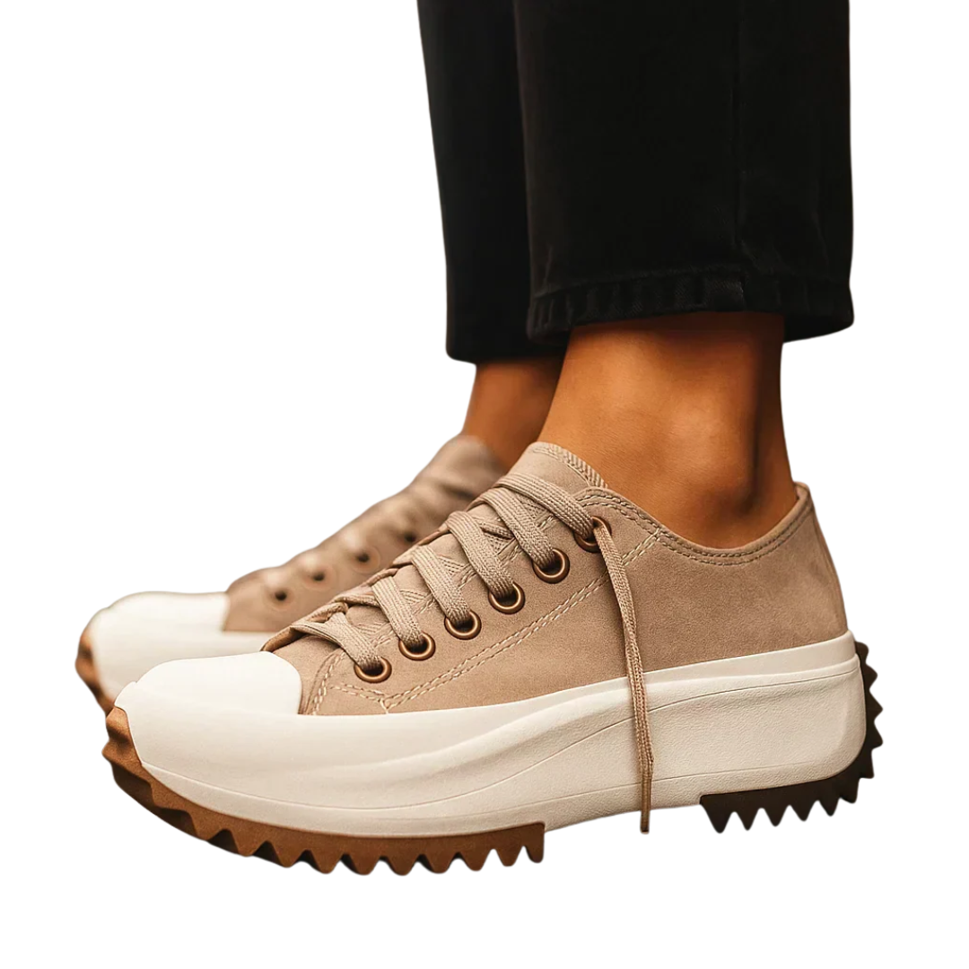 Progettate per accompagnarti ogni giorno, queste sneakers uniscono supporto ortopedico e design contemporaneo. Il plantare imbottito e la suola platform ammortizzante garantiscono una camminata confortevole, mentre le linee pulite con lacci creano un equilibrio perfetto tra funzionalità sportiva e minimalismo elegante—ideali con jeans, outfit sportivi o look casual moderni.