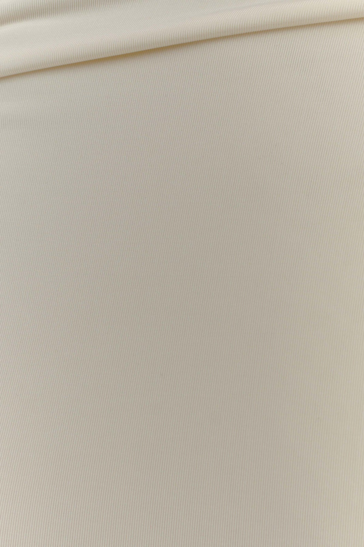 ✔ Scollo asimmetrico – Dettaglio audace e raffinato con leggere pieghe sulle spalle